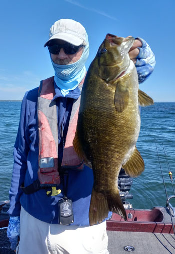 Having had some decent walleye casting around that hump during previous trips, we made a few casting passes, and landed a few more.
