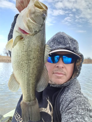 Casting into the gusting wind, I started getting follows from largemouth bass, and managed to land 2 of them in the first hour of fishing.