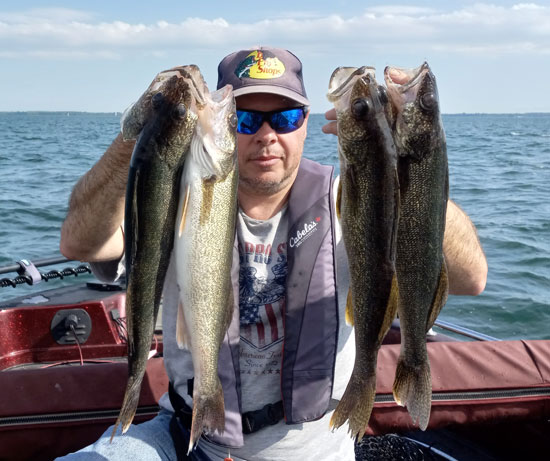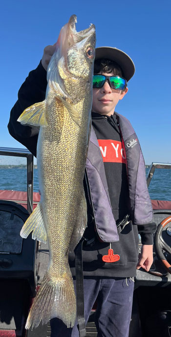 Our final day of fishing for this trip started off with sunny skies and no wind. Again, another slow start until the wind picked up. We timed it perfectly, ending up at our walleye hot spot. Sure enough, Eli managed another over slot size walleye at 23 inches.
