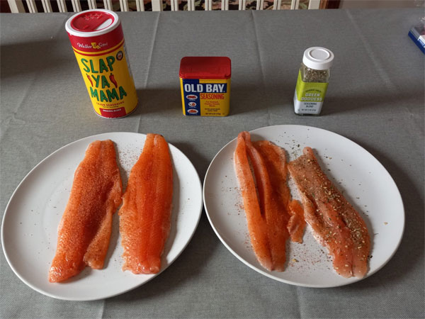 I seasoned some flour with a variety of spices, coated the fish in beaten egg, and dipped into flour mix. Didn't have any butter on hand, so I used a mix of canola and olive oil to pan fry them. Drizzled with some fresh squeezed lemon juice.