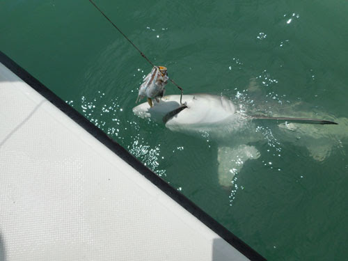 Day goes on, we get a few of our baits chomped off by smaller blacktip sharks, but no more hook ups.