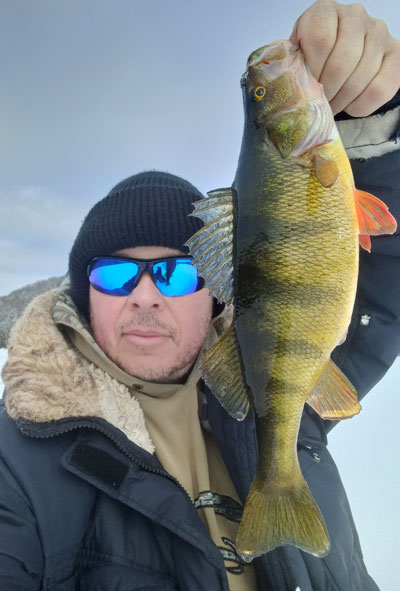 We trekked to out spot, and got to work trying to locate a pattern. After spending a good hour or so of searching, we got into some sporadic perch at about 28 to 32 feet of depth. Sizes were good, I even managed to land my biggest ice perch at 13.5 inches.